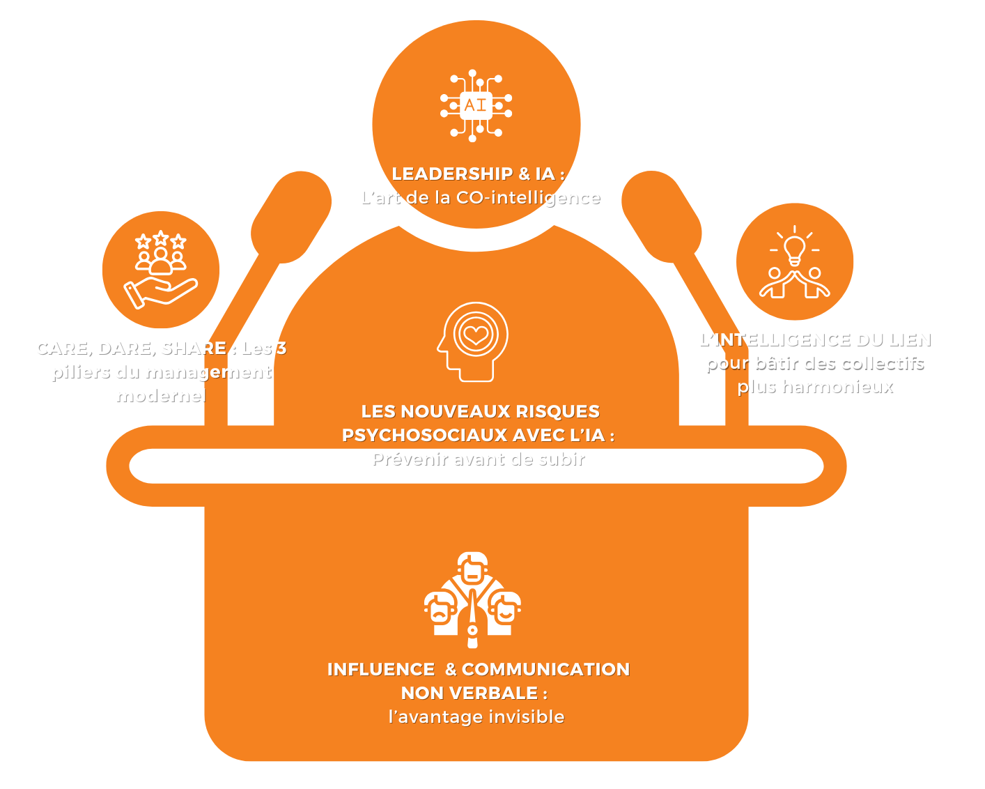 Voir OFFRE CONFÉRENCESCette conférence revient à l'évidence : on manage comme on est. A moins de savoir comment faire autrement ! et ça ne passe pas seulement par la parole.